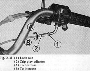 - Make sure there is a little play in the throttle cable, both on the grip‑play adjuster and on the throttle‑cable adjustment nut on the carburetors.