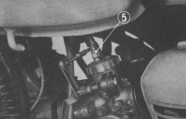 - (5) Throttle‑cable adjustment nut on carburetor